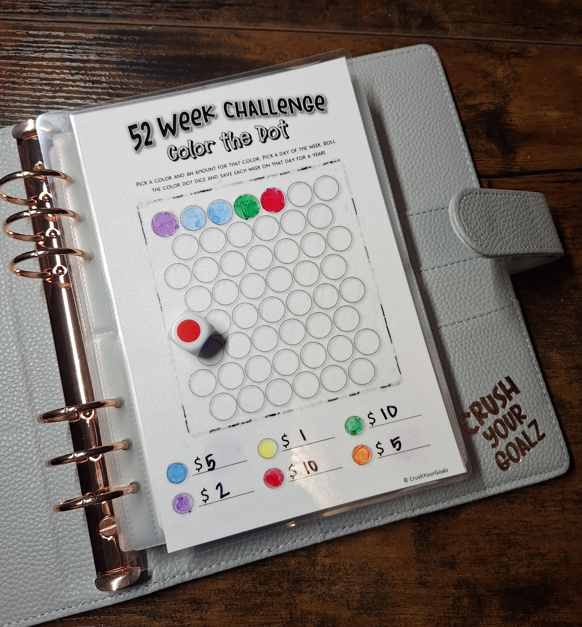 * 52 laminated Color the Dot Cards to track your Savings