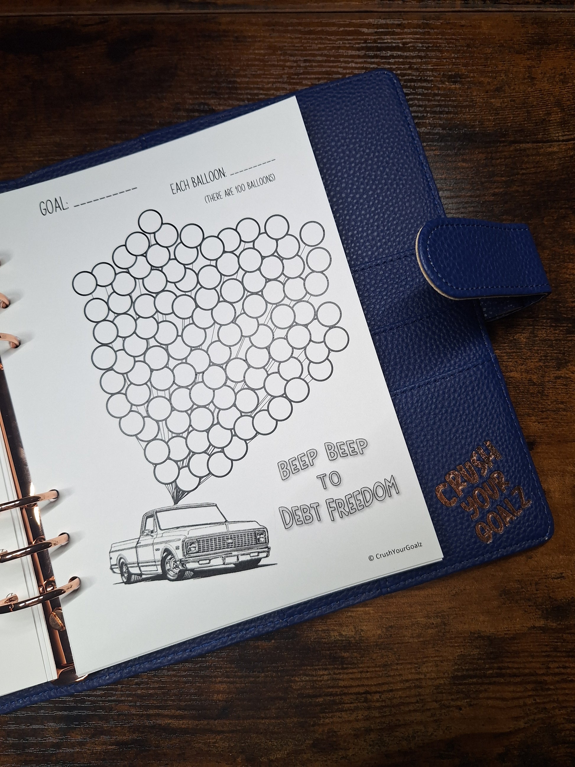 Truck Payoff Debt, Truck Savings Chart, Debt Payoff Chart, 100 Balloons, Debt-Free Goal Tracker, Car Debt, Debt Payoff, Car Savings - A5 Size