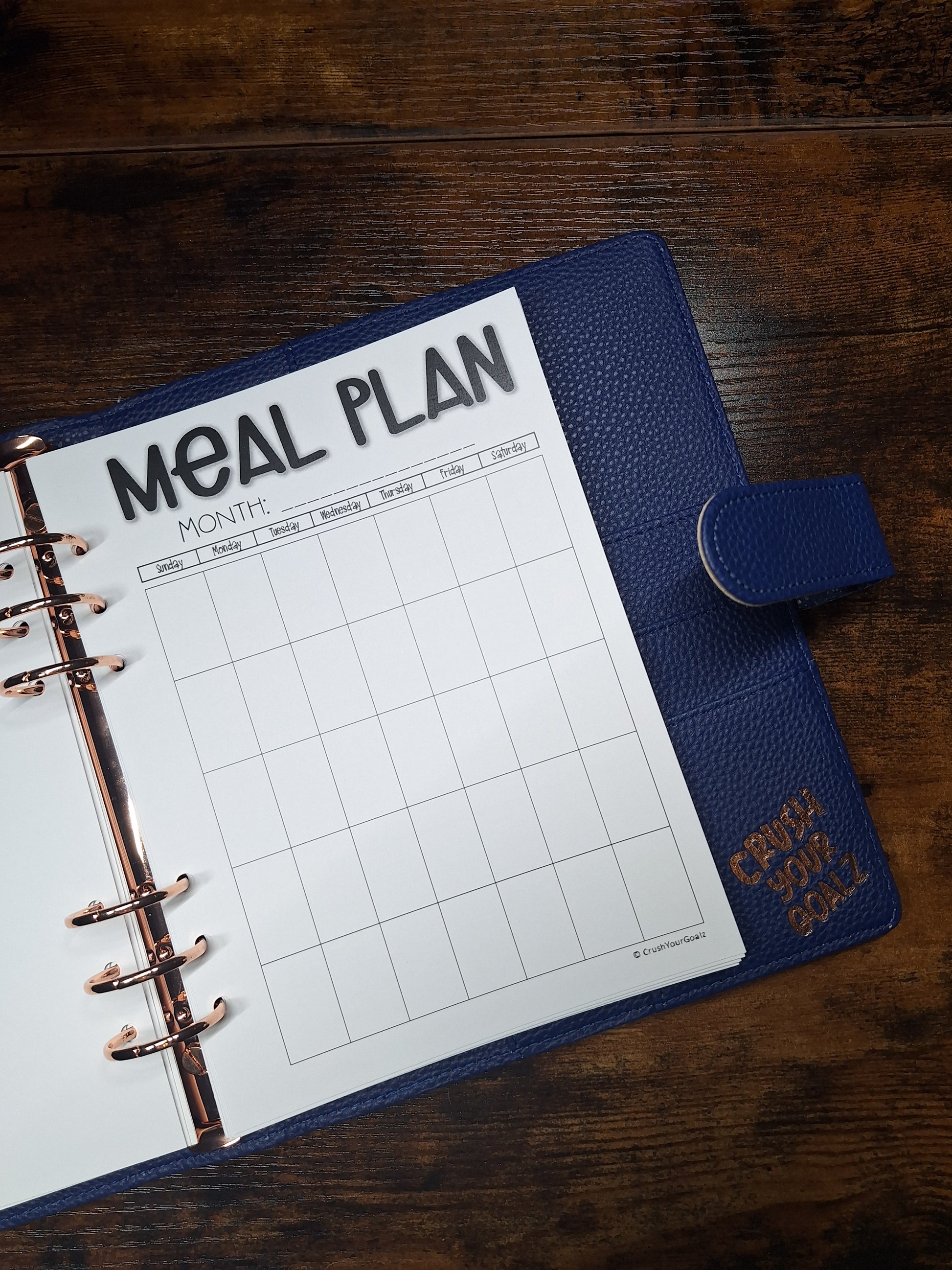 Meal Plan Monthly Chart, Meal Planning, Health and Fitness, Fitness Goals, Health Goals, Groceries - A5 Size